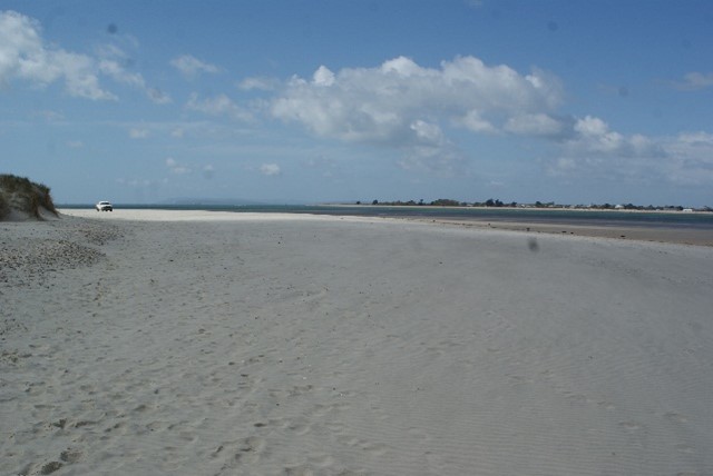 Figure 26. An eroded channel through the dunes on the spit neck appears visible.